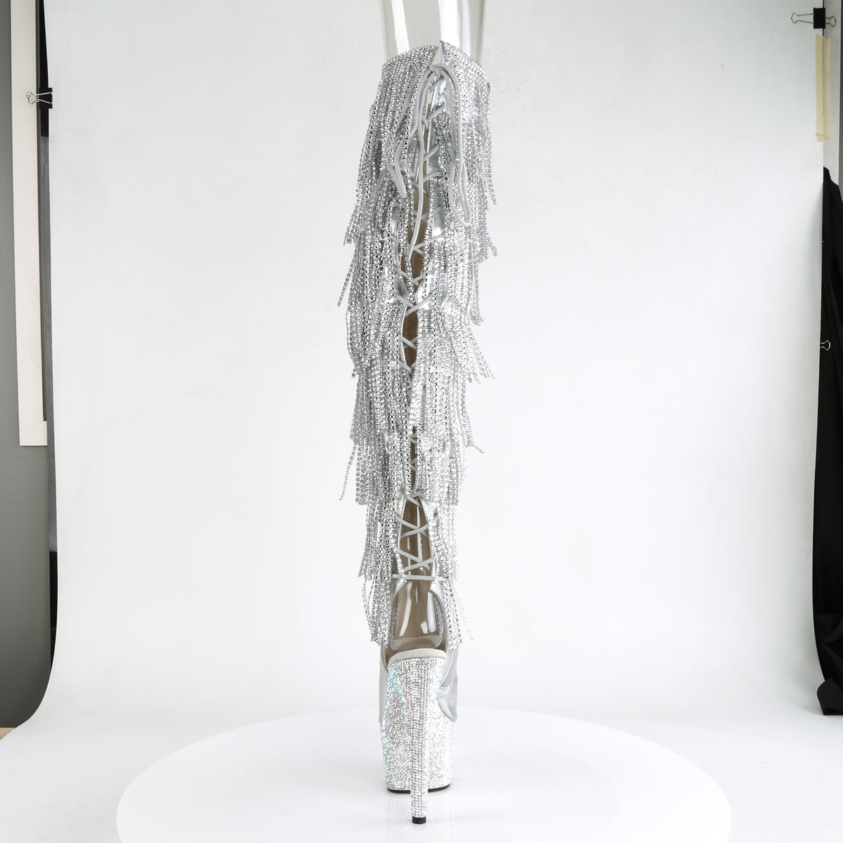 Bejeweled-3019rsf-7 sexy tacón de 7 pulgadas rehinestones plateado muslo