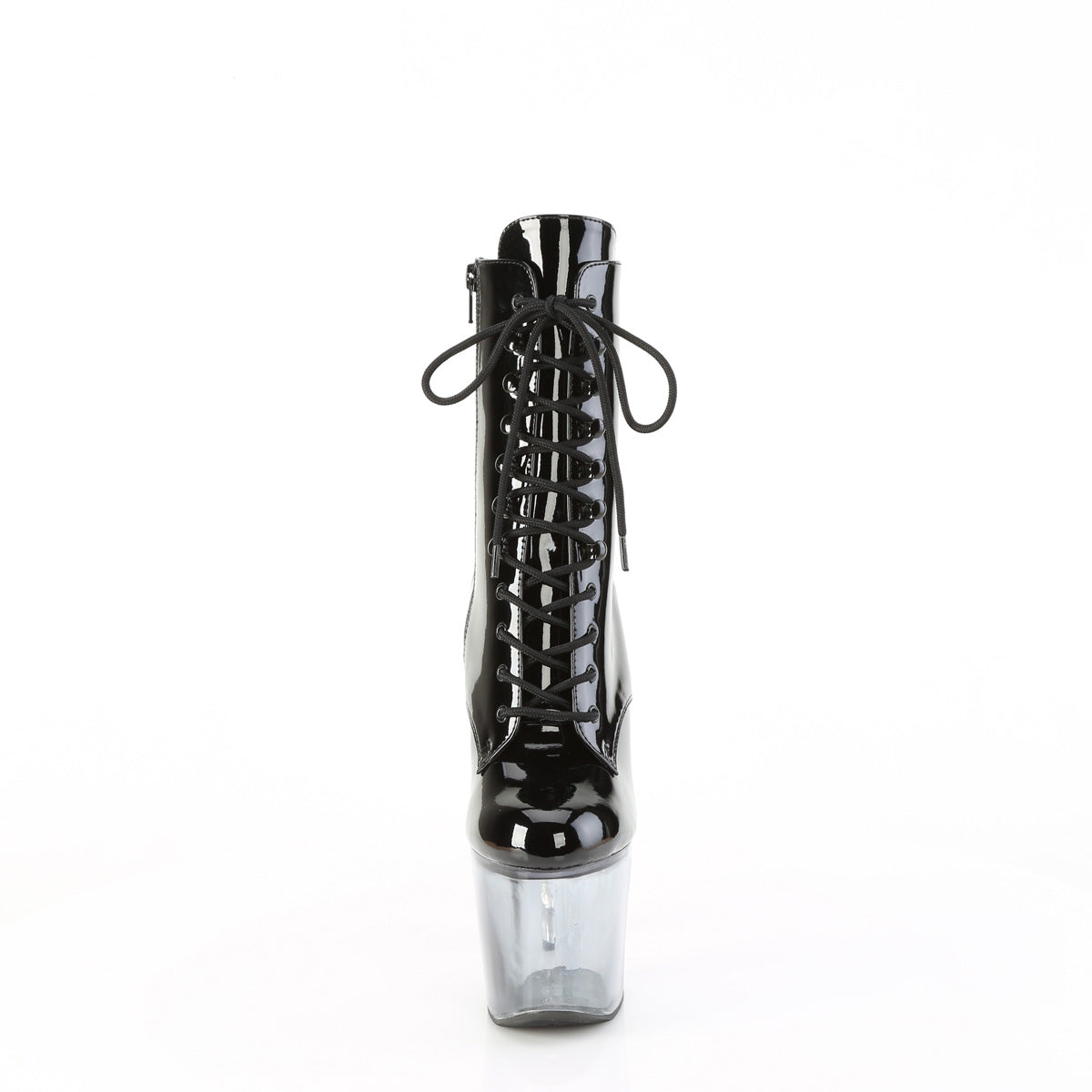 Breve descripción: Tacón de 7 pulgadas y un tobillo de plataforma de 2 3/4 de pulgada - Tacón apilado de 7 "(178 mm), 2 3/4" (70 mm) de botín de tobillo delantero de plataforma con plataforma ombre negra/transparente