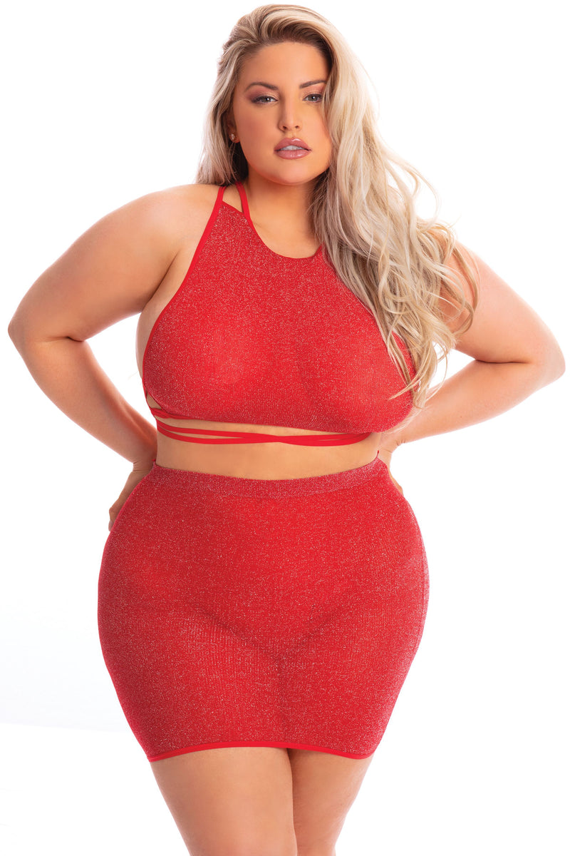 PL23075X Sexy Lingerie Bedroom Wear Lipstick Midnight Sun 2pc Skirt Set